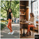 Leggings Horizontal Stripe Red Gold Metallic Glossy