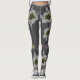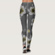 Leggings, elegantes ropa deportiva de mujeres en gris, con arte florido impreso en grises y una pizca de amarillo mostaza. Personaliza el gris a tu color favorito.