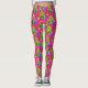 Una estampada de setas con colores psicodélicos. champiñones verdes con corazones rosas, junto a champiñones más pequeños con gradientes rosados púrpura y sombríos naranjas.