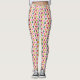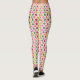 Estas leggings festivas presentan un patrón festivo inspirado en los clásicos diseños Navidades de los años 70. La impronta geométrica simple de los círculos y las rayas verticales está en verde, rojo, naranja, rosa y verde limón sobre un fondo blanco.