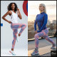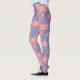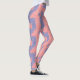Una mujer modela leggings con motivos geométricos coloridos de color rosa y azul, mostrando un diseño único de interferencia de olas.