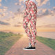 Leggings Japanese Floral Blossoms in White on Pink Burgundy