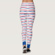 Un par de leggings cortos; rayas rojas, blancas, azules con esposas azules en el tobillo. Divertido para el 4 de julio, pero también con un estilo náutico para un día de navegación.