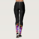 Estas son piernas negras con diseños coloridos y brillantes en el fondo de las piernas. Los colores son rojo, naranja, golf, verde, azul, violeta, rosa y negro.