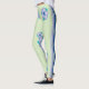 Las piernas de diseño de rayas y flores azules en verde claro.