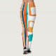 Estas leggings tienen un diseño moderno de mediados de siglo de líneas y rectángulos en tonos retro de naranja, oro, arándanos, verde azulado, verde, azul, turquesa y verde.