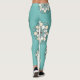 Leggings Magnífica Turquesa Gran Flor Blanca Mujer