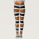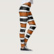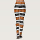 Estas leggings tienen un diseño geométrico de una manta de líneas marrones y blancas sobre un fondo negro.
