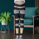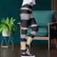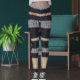Leggings Modern Black Grey Beige Knit Stripe Pattern Yoga