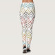 Estas leggings tienen un diseño art deco de Vs de cabeza en colores retro de naranja, verde azulado, dorado, negro, rojo, marrón y gris.