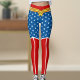 Echa un vistazo a estas leggings inspiradas por Wonder Woman con sus icónicas botas rojas y blancas, y un fondo con estampado de estrella azul.