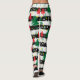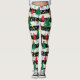 Divertidos Navidades blancos y negros rayas de nieve con árboles decorativos rojos y verdes con brillantes copos de nieve en caída blanco y amarillo Comfy Leggings Surface Pattern Design.