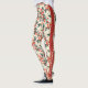 Los Navidades rojos festivos Holly Berries Leggings. Leggings de vacaciones con un patrón festivo de berry en un fondo neutro. El diseño presenta hojas verdes y bayas rojas con una audaz franja roja en el costado de cada pierna con las palabras "Feliz Navidad" creando una alegre atmósfera navideña. Puede personalizar el texto a un saludo diferente o a su nombre.