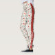 Navidades rojos festivos Holly Berries Greenery and Birds Leggings. Leggings de vacaciones con un estampado de berry y pájaros lindos en un fondo blanco. El diseño presenta hojas verdes y bayas rojas y pájaros lindos con una audaz franja roja en el costado de cada pierna con las palabras "Feliz Navidad", creando una alegre sensación de fiesta. Puede personalizar el texto a un saludo diferente o a su nombre.