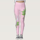 El cuadro original de estas elegantes leggings es un montón de flores de fucsia rosa bonito. Las obras de arte de este diseño están pintadas con acuarela. Las grandes flores rosadas están colgadas entre las hojas verdes y están decoradas en un estilo esquemático con un bolígrafo negro fino. La imagen única de las flores rosadas se distingue realmente por el fondo rosado de estas leggings originales. Esta bonito de leggings florales es ideal para muchas ocasiones.