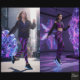 Leggings Neon Pink Purple Glitch Diagonal Stripe