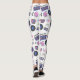 Registros de vinilo azul y rosa retro, boombox, videojuegos y cintas de cassette leggings nostálgicas.
