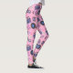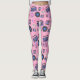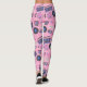 Registros de vinilo azul y rosa retro, boombox, videojuegos y cintas de cassette leggings nostálgicas.