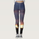 Nubes de color morado y una palmera solitaria al atardecer en las leggings únicas