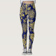 Leggings Oro y marina, estilizado esténcil floral