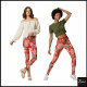 Leggings Pastel Coral Retro Floral Daisy Backdrop - Red