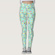 Las leggings impresas en todo el espacio de Guay impresas con huevos hechos a mano, tocino y salchichas sobre un fondo azul claro. Estas piernas tienen una sensación muy retro que sería una gran adición a cualquier uniforme del chef del desayuno o del personal de la cena.