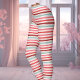 Leggings Patrón de franjas de San Valentín azul rojo y rosa