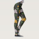 Un patrón sorprendente con flores amarillas y violetas con tallos verdes y hojas sobre un fondo negro.