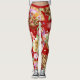 Leggings Patrón japonés de arte rojo floral de Asia