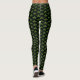 Leggings Patrón moderno de hojas de laurel verde sobre negr