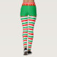 Navidades de piernas rayadas rojas, verdes y blancas con tréboles dorados.