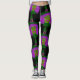 ¡Las polainas lindas del negro de la bruja de Halloween tienen la cara de la bruja tejada y ella tiene el pelo púrpura brillante, una cara verde y ojos grandes!