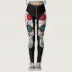 Las polainas negras con un cráneo colorido del azúcar diseñan en el lado de cada pierna.