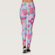 Estas leggings tienen un diseño escandinavo de flores y hojas en diversos tonos de rosa y verde sobre un campo azul.