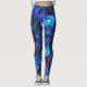 These psychedelic leggings feature bright blues and orange in an asymmetrical kaleidoscope pattern.