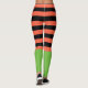 Leggings de rayas negras y naranjas divertidas Halloween fondo verde