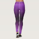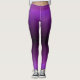 Las leggings personalizadas Violet Purple Ombre Stripes presentan sutiles rayas de violeta violeta graduándose en geométricas de la red de pescados morado-negro oscuro en los muslos y pantorrillas que terminan con violeta de nuevo alrededor de los tobillos en un efecto sombrío e inverso.