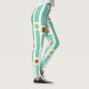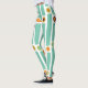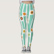 Estas leggings tienen un diseño retro de los años 70 de rayas azules interrumpidas por círculos marrones, naranjas y verdes.
