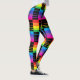 Si te gustan los rectángulos y los arcos te encantarán estas coloridas leggings. Los pantalones de estiramiento geométricos divertidos presentan un patrón funky que incluye damas, rayas y los colores del arcoiris. Los colores son negro, rojo, naranja, amarillo, verde, azul, violeta y rosa.