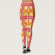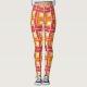 Esta leggings tiene un diseño geométrico de L's en rojo, naranja y amarillo, colocado en diferentes direcciones sobre un campo de blanco.