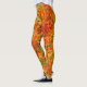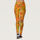 Estas leggings presentan un collage digital hecho con muchas capas y texturas en tonos amarillos, naranjas, verdes, marrones y naranjas rojos.