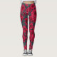 Leggings Rosas rojas con hojas grises en negro