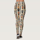 Earthy geometric pattern leggings inspired by tribal mudcloth textiles, featuring hand-painted rectangles, diamonds, and triangles in charcoal black and terracotta on a textured beige background. A warm boho design ideal for rustic décor lovers, artisan style fans, and anyone drawn to earthy geometric aesthetics.