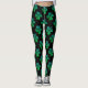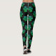 Shamrock Clover Green Pattern St. Patrick's Day Leggings. Un texto del Feliz Día de San Patricio con un shamrock verde hecho a mano para suerte en un fondo negro. Las clovers tienen cuatro hojas. Puede cambiar el texto.