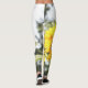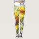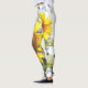 Las leggings de diseño para mujeres con una gran huella de girasol, un jardín florido con motivos amarillos, grises y verdes suaves.