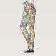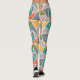 Estas leggings tienen un diseño moderno de mediados de siglo de triángulos que le dan un aspecto de suelo terrazo, en gris, turquesa, naranja, oro y verde.