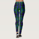 Leggings Traços azuis 'flutuando' sobre fundo verde.
