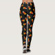 Estas lindas leggings de maíz de caramelo te llevarán al espíritu de otoño mientras haces esto mientras los niños van Trick o Treat en Halloween. Presenta un patrón de maíz dulce y naranja sobre un fondo negro.
