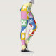 These leggings burst with playful, modern energy thanks to their bold patchwork design. Each square and rectangle features its own vibrant motif—tulip-like florals, diamonds, stars, circles, and stylized leaves—creating a lively mosaic of color and pattern. The palette mixes saturated reds, yellows, greens, blues, pinks, and crisp white, giving the piece a cheerful, retro‑meets‑modern vibe.