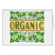 Slogan ecológico para jardineros, cocineros y celebraciones del Día de la Tierra, en letras mayúsculas decoradas con un fondo de bellotas y hojas de roble, rodeadas de hojas deslizantes.